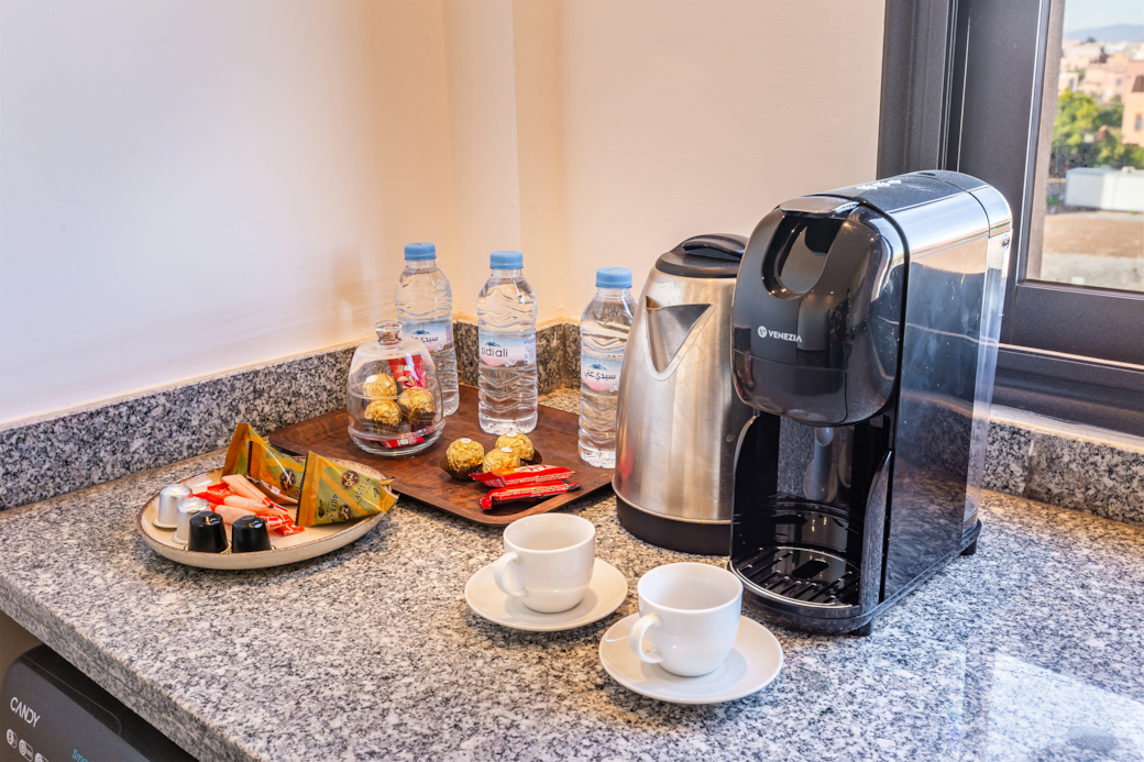 Cafetière, Cuisinière, Micro-ondes, Réfrigérateur, Grille-pain